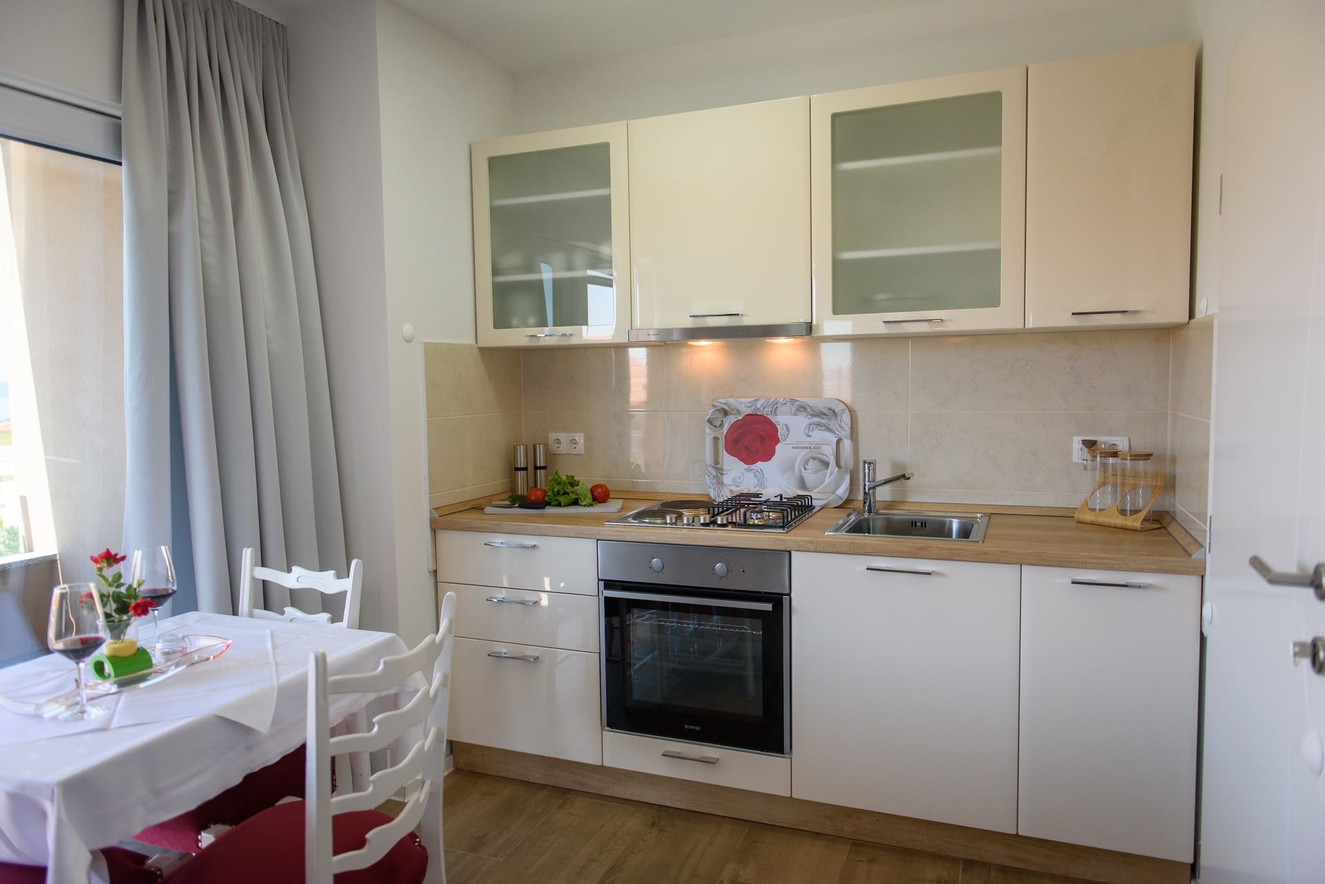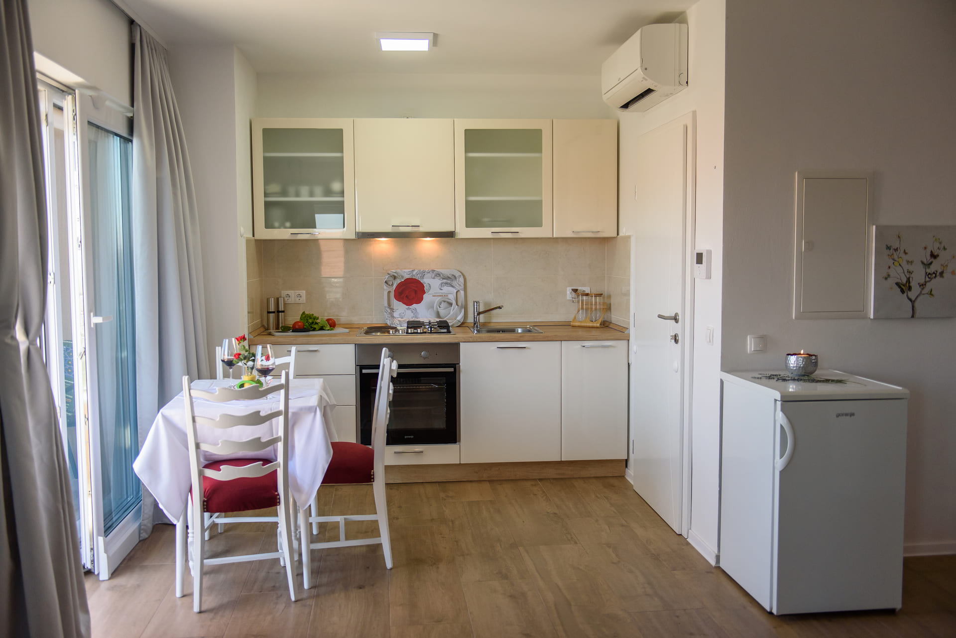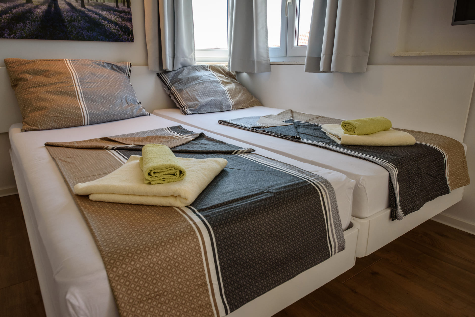 - 1 bedroom with a double bed(180 x 200 cm), separable if necessary, 2 nightstands, wardrobe and bed linen