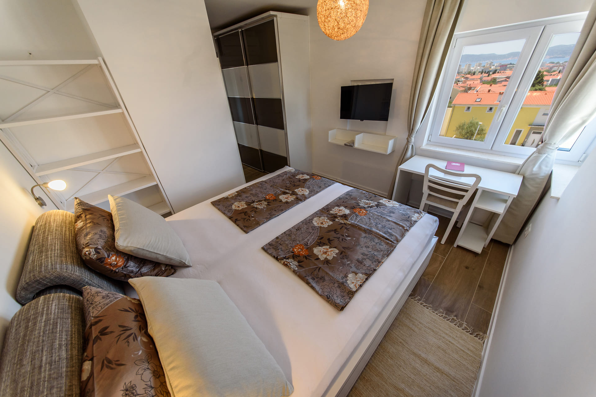 - 1 bedroom with a comfortable double bed (180 x 200 cm), 2 nightstands , wardrobe, desk with chair , LCD TV, bed linen