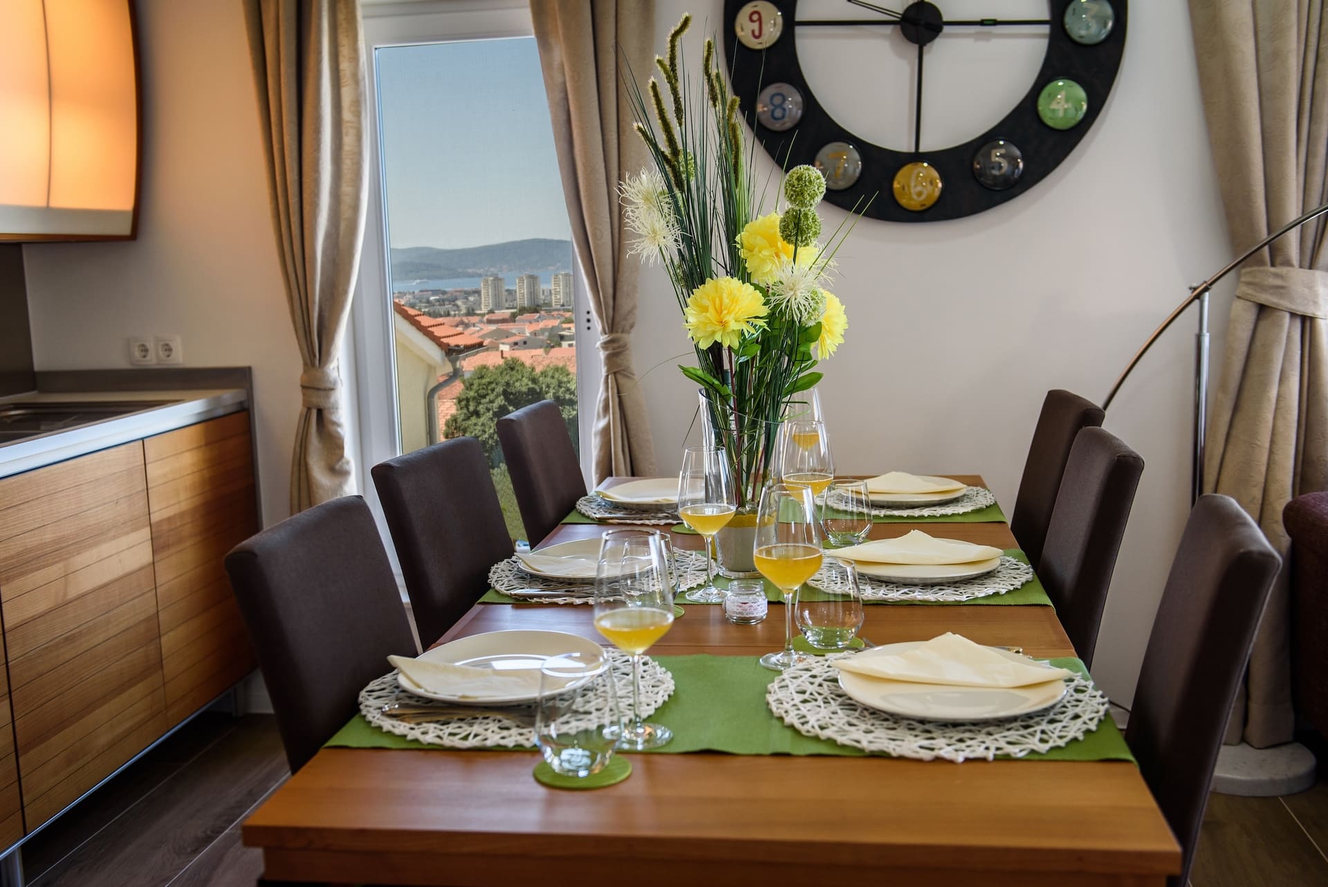 With balcony and large roof terrace with beautiful views of the old town, islands and the sea!