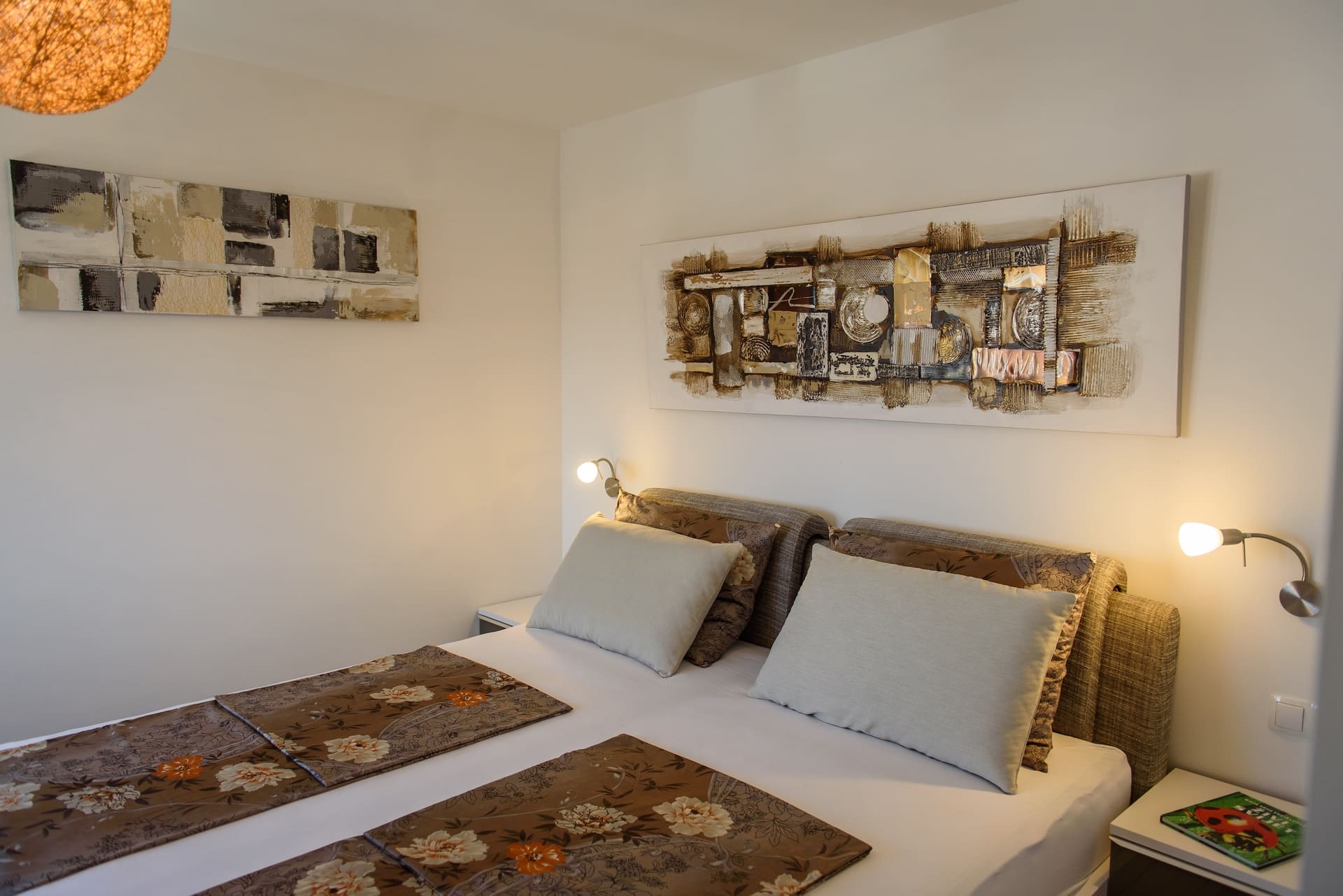 - 1 bedroom with twin beds (90 x 200 cm), 2 nightstands, wardrobe and bed linen